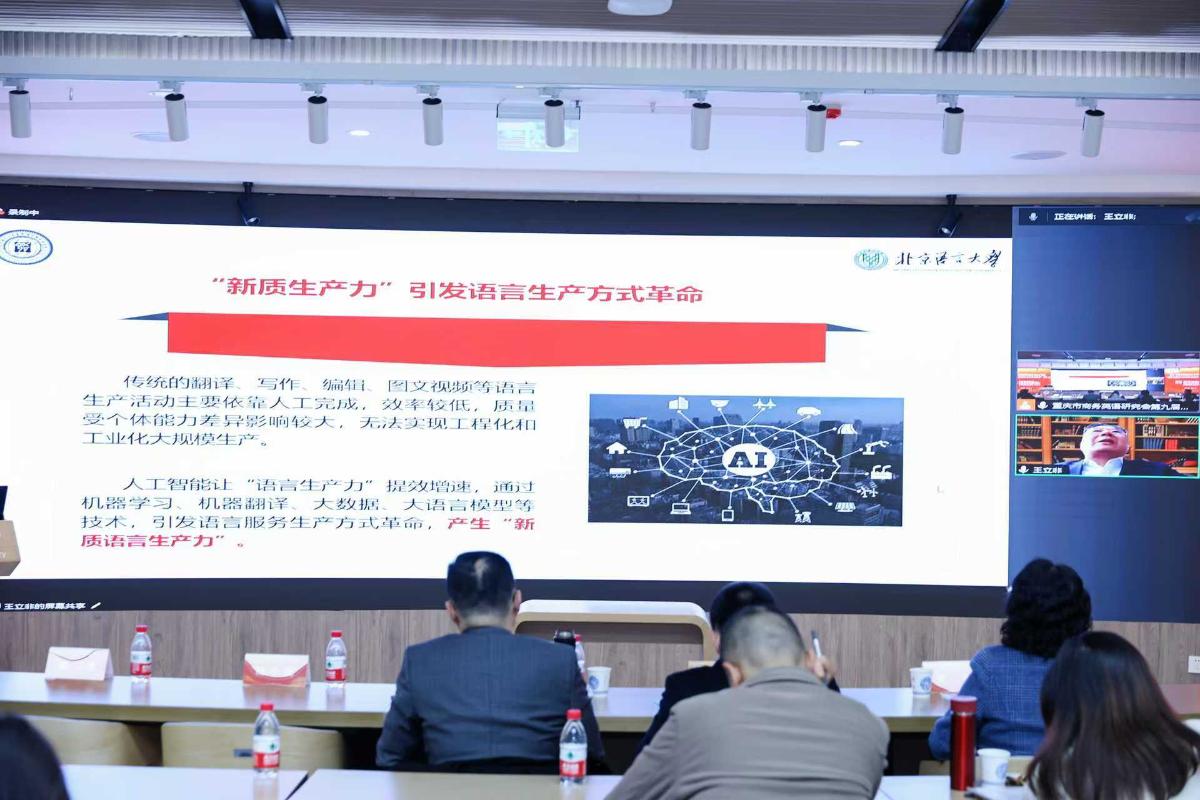 新当选会长胡文飞教授讲话 下午的学术研讨环节气氛热烈,内容丰富。在JBO竞博段玲琍教授和重庆工商大学周琳教授的主持下,来自全国的知名专家学者围绕大会主题发表了主旨演讲。北京语言大学王立非教授以“新质语言生产力发展与商务英语教育新机遇”为题,探讨了新质生产力背景下商务英语话语教学与研究的前沿方向;广东外语外贸大学胡春雨教授则聚焦“数智时代的商务英语教师发展研究”,深入分析了人机协作在提升教学与科研中的重要作用。西南财经大学张家瑞教授以“外语技能、商务实践、国际竞争力的构建 ——以慕课“商务英 语· 案例篇”为例,探讨了如何通过课程设计强化员工的语言技能、商务实践能力与国际竞争力,并介绍了慕课在“一带一路”沿线国家推广的成功经验;对外经济贸易大学史兴松教授从跨文化视角解析了中外企业在数字化语境下商务沟通的异同,强调培养跨文化数字素养的重要性;JBO竞博董曼霞教授以“价值引领,目标导向,学为中心,多元融合,促学评价——商务英语专业建设创新实践”为题分享了数智时代该校商务英语专业建设举措以及取得成效。