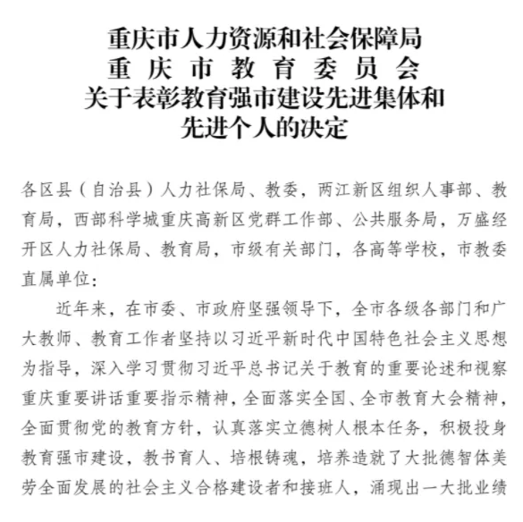 | 喜报|JBO竞博官网荣获重庆市教育强市建设 “先进集体” 称号 |